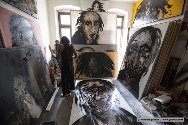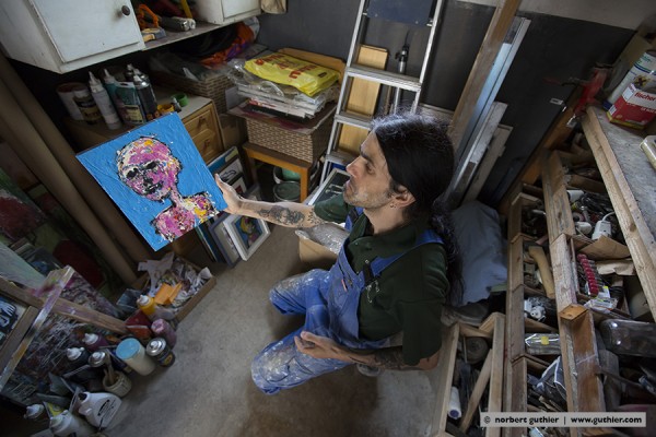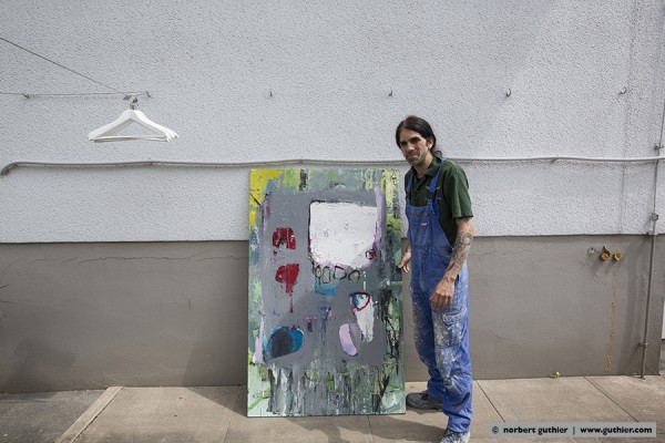 der 17jaehrige portugiese nuno evaristo kam in lissabon am schaufenster einer kunstgalerie vorbei und war elektrisiert. was er dort sah, war eine neue welt.; was er dort sah, wuerde er auch machen; was er dort sah war SEINE welt. nach diesem schlüsselerlebnis ging nuno mit 18 jahren nach london und machte fortan seine eigene kunst. vor 2 jahren und nach 20 jahren london, verschlug es ihn in die idylle von echte bei göttingen, wo er in einem kleinen gartenhausatelier arbeitet. nuno ist ein kaempfer für seine kunst, für seine gerechtigkeit. er schimpfte gegen das kunstestablishment und verteidigte radikal die kleinen preise für seine arbeiten. öfter schon wurde er angegangen im netz, er könne doch seine kunst nicht so günstig verkaufen. doch nuno meinte erregt, „kunst ist für alle da. kunst muss sich jeder leisten können.“ und so kommt es, dass seine din A4 großen arbeiten gerade mal um die 55€ kosten.
