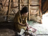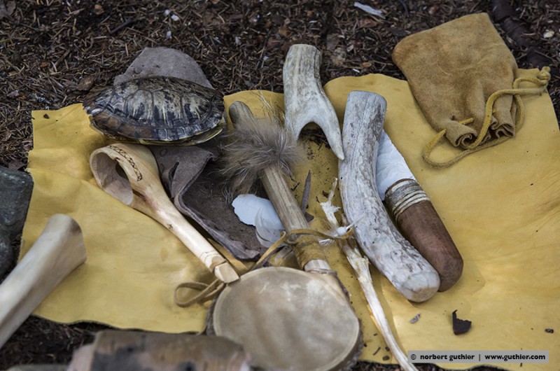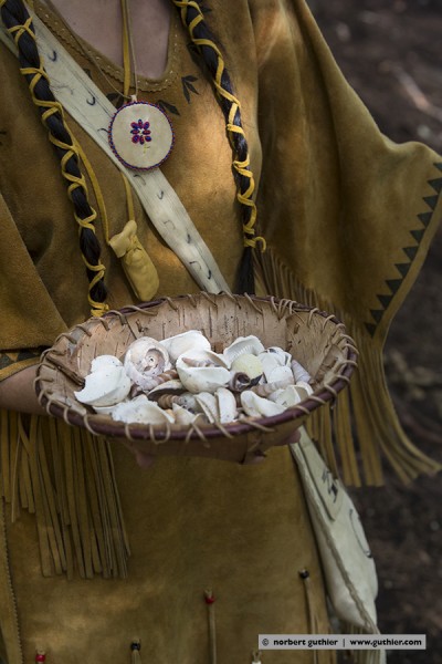 Sure I can not play all the stories, so here only two details that have me particularly intrigued. Chantal showed us various animal skins and the difference between industrially tanned skins of those who were treated in traditional Indian fashion. The Indian variant was much, much softer and even breathable. And how it was produced? With a lot of water and the brains of moose and bears. Nothing for olfactory sensitive noses but the result is amazing.