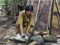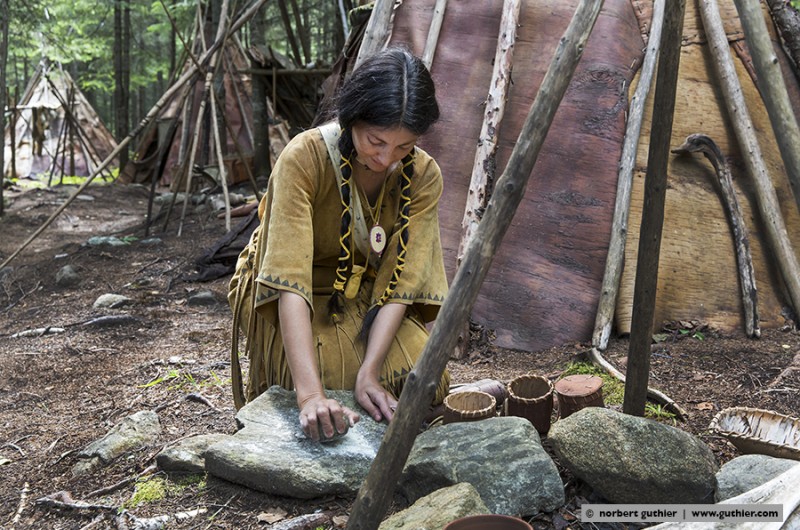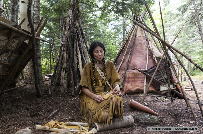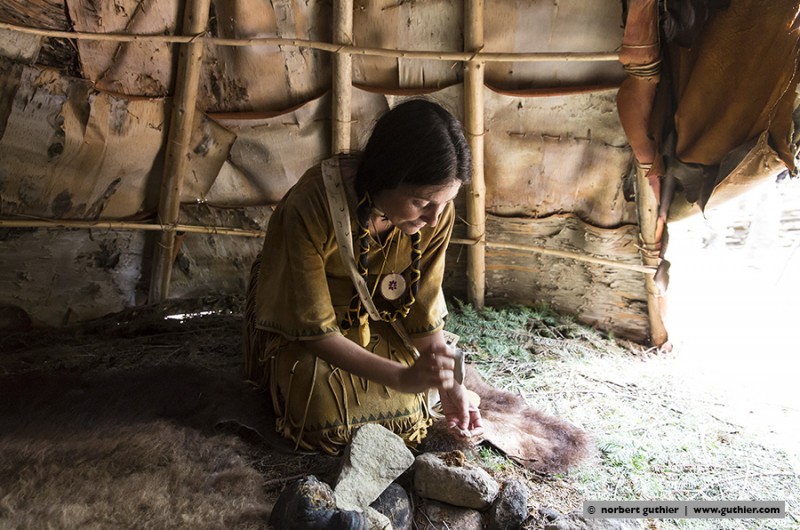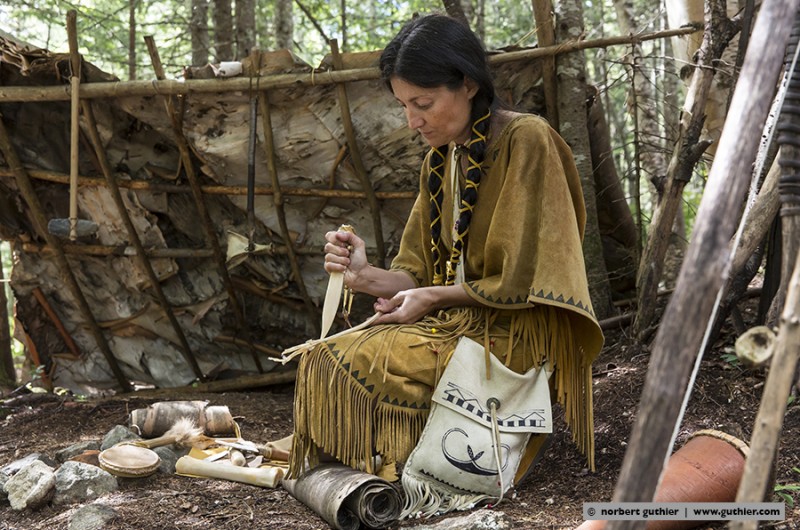 In earlier times, the women and men of the teueikan were naked in the summer months and they put their wigwams at the river shores for fishing. In the winter months they moved to the game-rich forests and used different clothing parts against the fierce cold. Despite all revival thoughts it seems that the jesuit moral which was forced on them is obviously not reversible. Too bad …… © n.g.