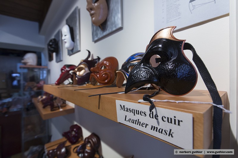 Located in the historic district of Vieux-Port / Québec City real quality is catching ones eyes: Guy Levesque runs his small studio with an attached showroom in the Sault-au-Matelot. There he creates handmade leather masks. We loved especially his self-designed model with which he reproduces the masks. Guy is a talented artist and he has taught to artists working for Cirque du Soleil how to mold leather and make mask with this particular technique. © B.G.