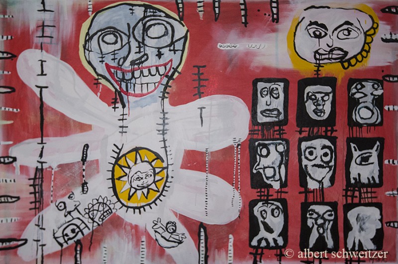 My first inspiration towards art came from my father. He drew cartoons and would sometimes exhibit his work. As a child I loved the book Where the Wild Things Are. After that, I would take inspiration from Science Fiction. I was fascinated by space creatures, aliens, monsters, goblins, and creatures from my dreams. Much of this was drawn from Omni magazine and MADD magazine, both of which I encountered through a High School art class. I continue to be inspired by Dadaism, Fantasy Art, and Surrealism. My style and inspiration have changed throughout my career. Now I paint to express the things I have learned throughout my life illustrated by these Critters. I like to incorporate animals and humans as well as patterns and geometric shapes into my art. I have always been inspired by spiritual art, Buddhism, and Christianity. I also take inspiration from different cultural art such as Day of the Dead, aboriginal and tribal art, as well as Mardi Gras parades in South America and Mexico. © Albert Schweizer