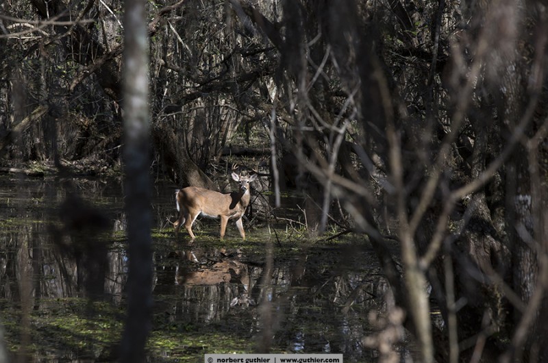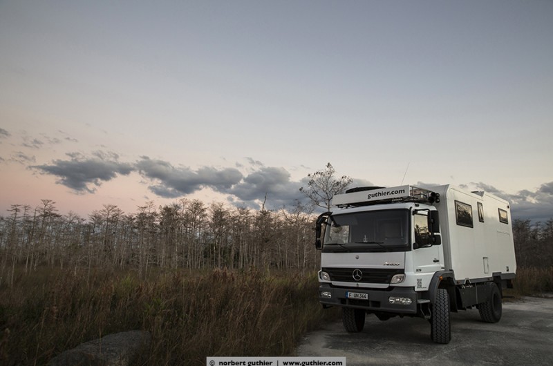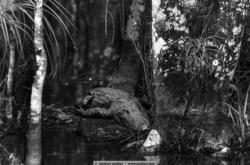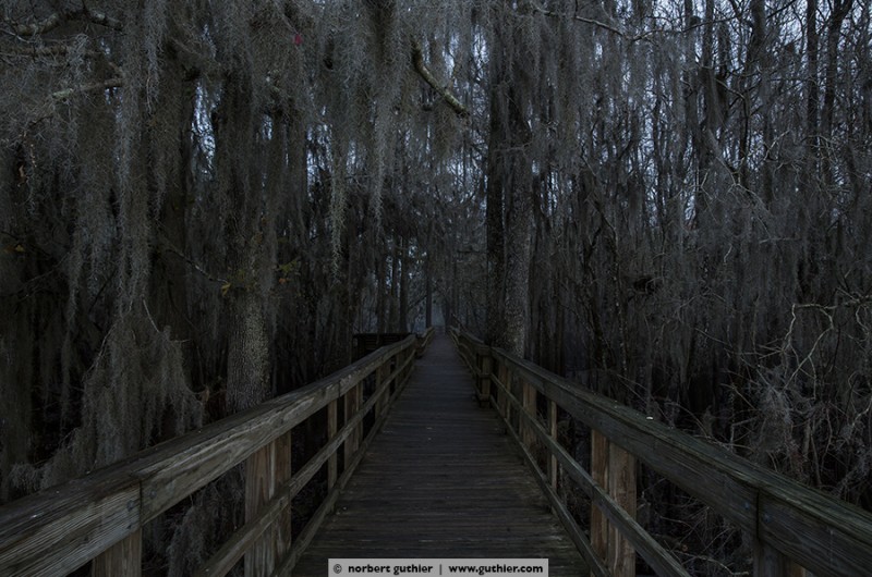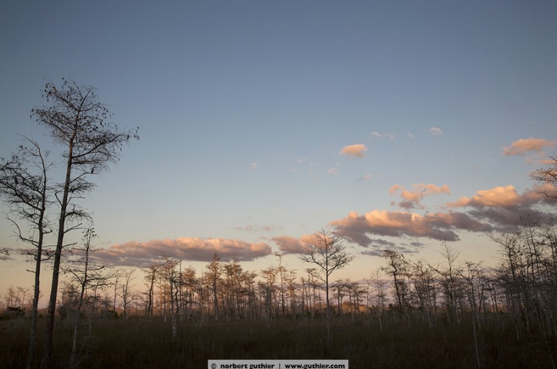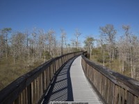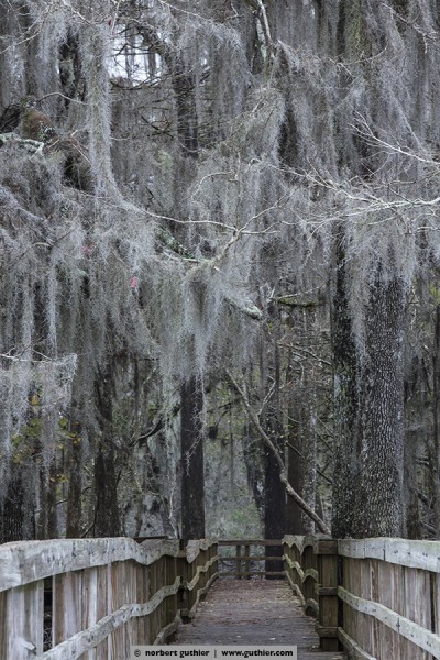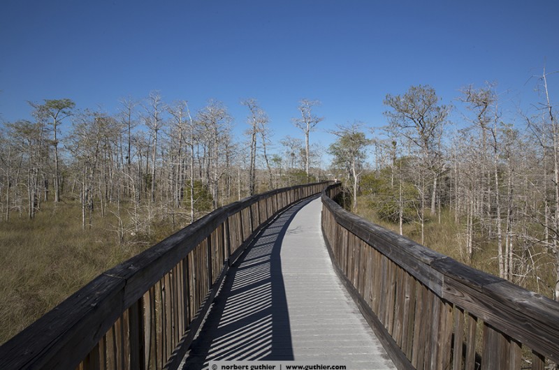 We drove the tamiami trails through the big cyprus national park. This sounds very idylic but the tarmac road goes straight through the park without any curves. Because to heap up the road a drench was build besides the street which had filled itself not only with water but nowadays with alligators and water birds as well. Indeed, many boardwalks and sideways makes the park very idylic. © n.g.