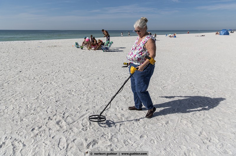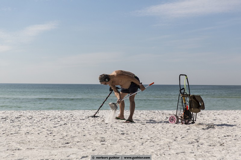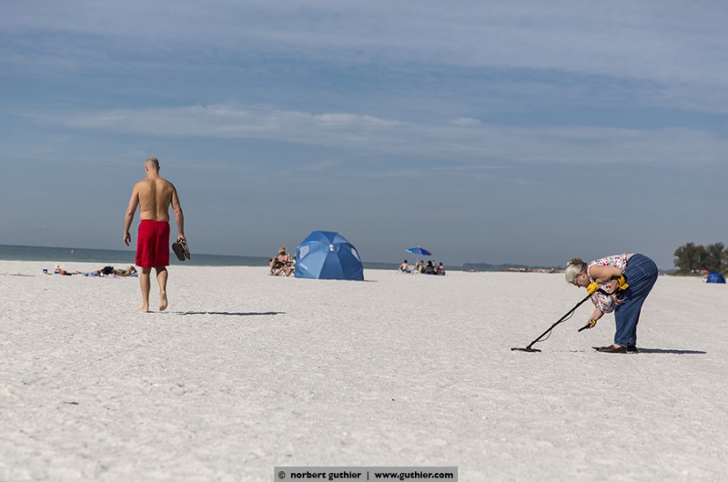 On many beaches i had noticed them but here on coquina beach there were quiet some: Treasure hunters. With professional metal decectors they comb the beaches for lost treasures. I asked one of them if he had already found something today: „A penny!” I asked another woman if she already had found something today and she answered “nothing yet”. I told her about the penny which was found by her competitor and she promptly replied  “Oh, so he’s ahead of me”. © n.g. © n.g.