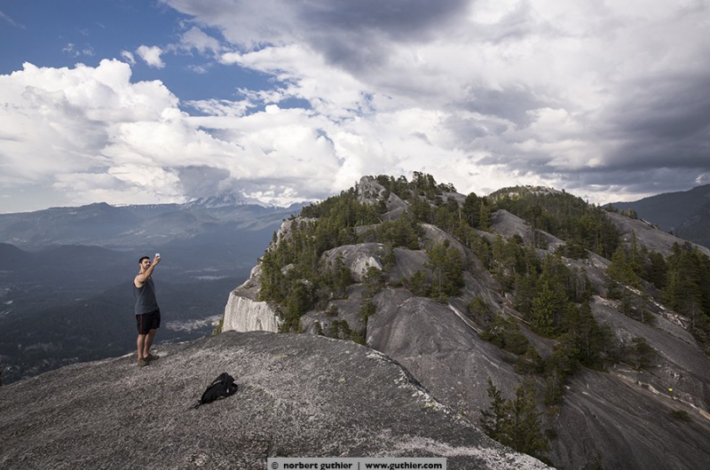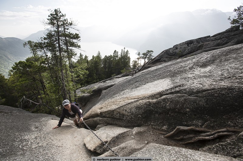 It´s only 1,5 km to the peak 1 but you can take a shortcut if you climb the 600 meters on the vertical cliff. We took the landscaped trail and its also steep, very steep. Mostly it goes uphill by stairs and ladders or you have to pull yourself up on chains wich are anchored on the rocks. But be aware of joggers who are using the tail as a training session …