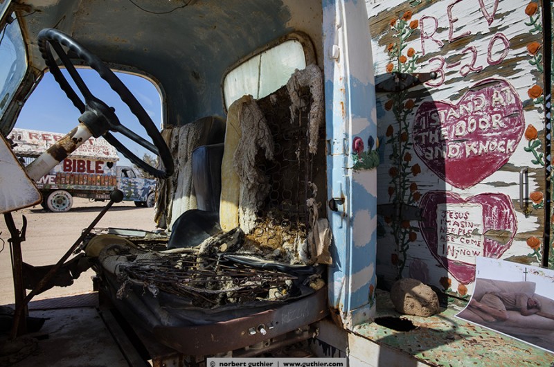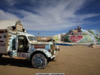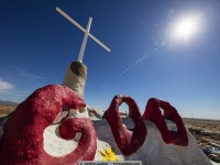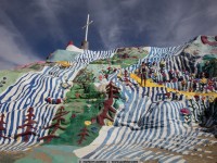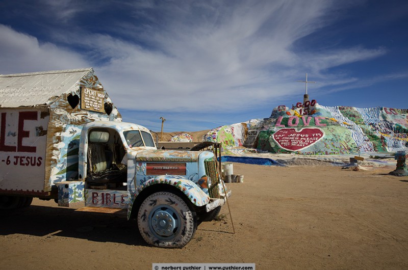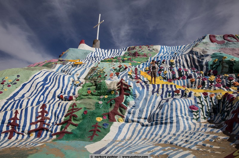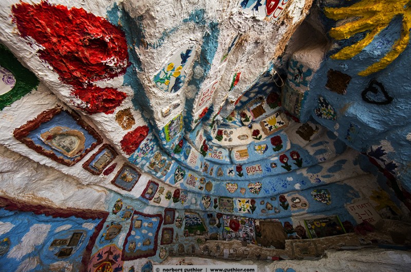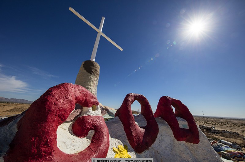 Not “salvation hill” but “salvation mountain” leonard knight (*1931 – † 2014) had modesty named his work. In the dry, hot climate of california he got hidden by a stroke of enlightenment. “bible”, “jesus loves you”, “god! is to be read with giant letters. He had plastered tons of clay mixed with straw on the hill and painted everything clorful. Two waterfalls with flowers and as mentioned in giant letters”god is love” and “say jesus i’m a sinner, please come upon my body and into my heart”. Well, the hill of the outsider artist kneight made it. It became a national cultural monument of the usa in 2002.