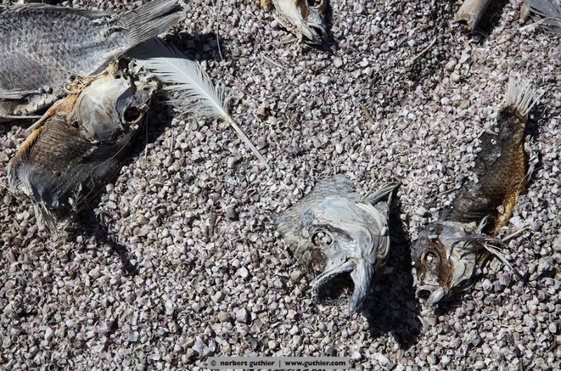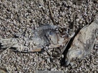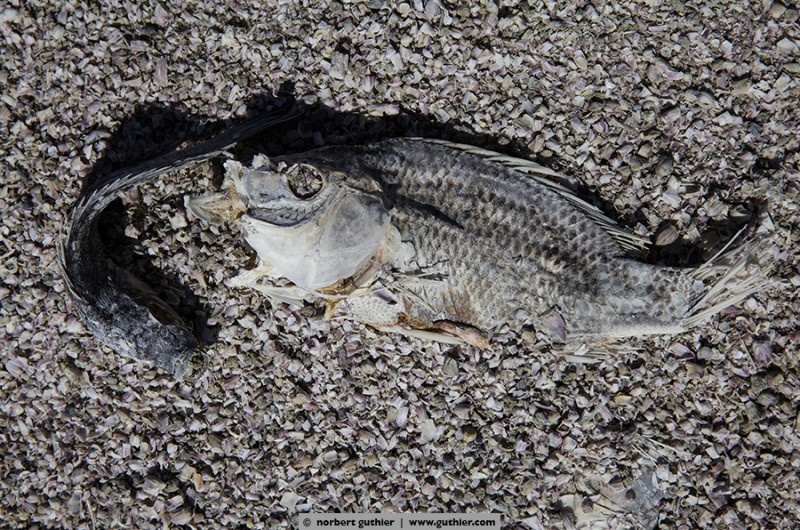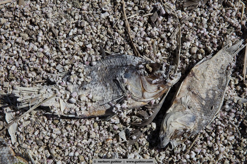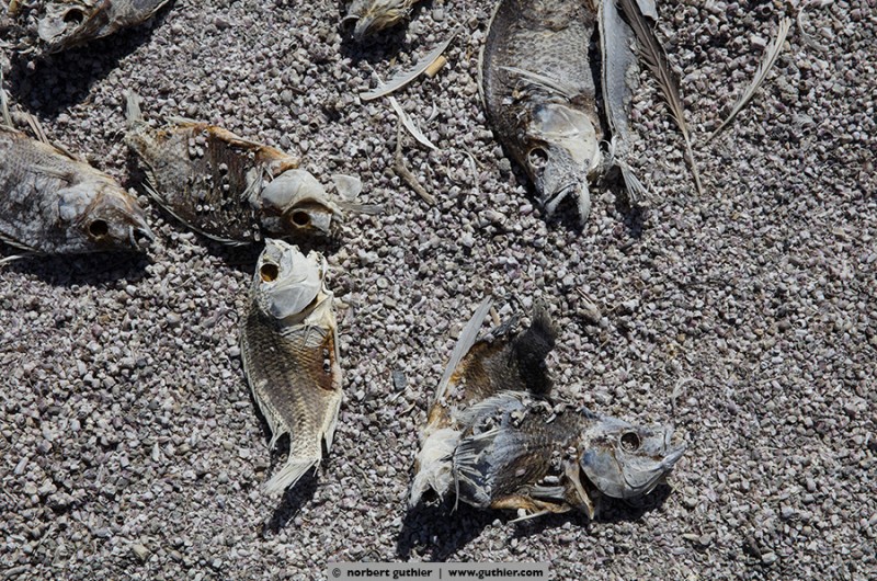 After the exhibition we are now back on the way to san diego and we rested for the second time at the salton sea. Because of the millions of dead fish we investigated and got a result: to have an edible fish they introduced 1929 tilapias and despite the salty seawater the fish breed very well. However, they are not adapted to the environmental conditions and once the water gets too cold or the oxygen content is too low, the tortured fishes die often with a disease (vibrio) in millions. Sadly many seabirds that feed on these fishes die as well.