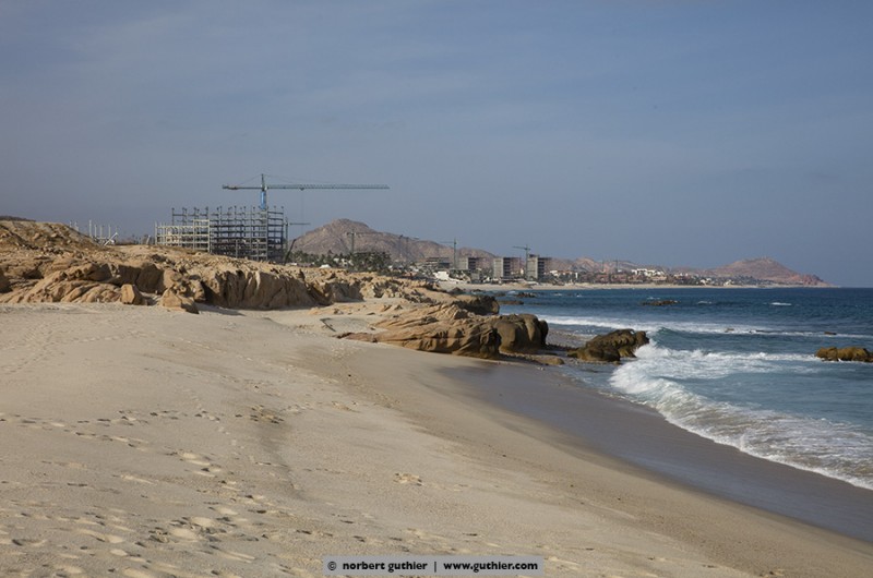 Lands end of the baja california and Cabo San Lucas is like a small, american tourist city. All along the beaches are building shells of new hotels, in a few years everything will have changed.
