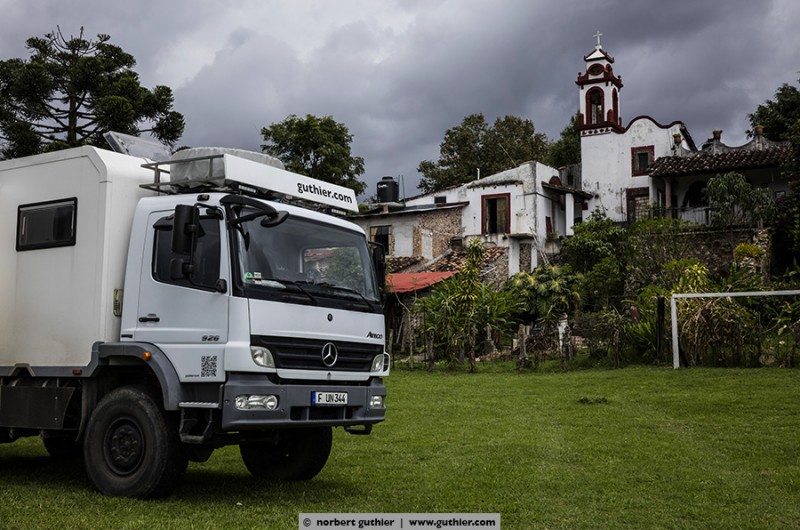 because of the height of our rig (12,5 feet ) we hadn´t fit through the arch of the hotel “hazienda xico inn” (operated by a german-mexican couple) but it was great on the parking lot in front and if you arrive by end oktober, you can celebrate the octoberfest. Michael has supported us with many things, and even has organized a mechanic, who searched for a fault in our cooling system late evening . We left the place with the fridge filled up with „bratwurst“ done by a special butcher in puebla.