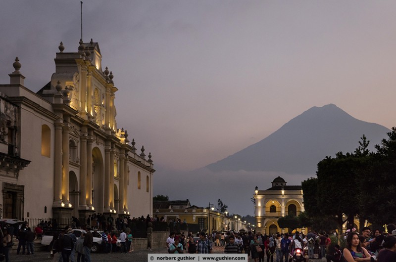 Once antigua was the capital of guatemala, but 1776 it got hit by a major earthquake which distroyed the city completely . Many churches were not reconstructed afterwards and if, they got thiscker walls and smaller towers. besides this, the government was moved to guatemala city. However, the city has not lost its charm and its lively nature, and is now a tourist highlight, flanked by three powerful volcanoes of which the “fuego” is active at the moment.