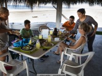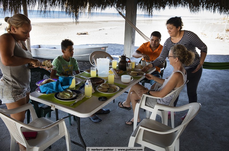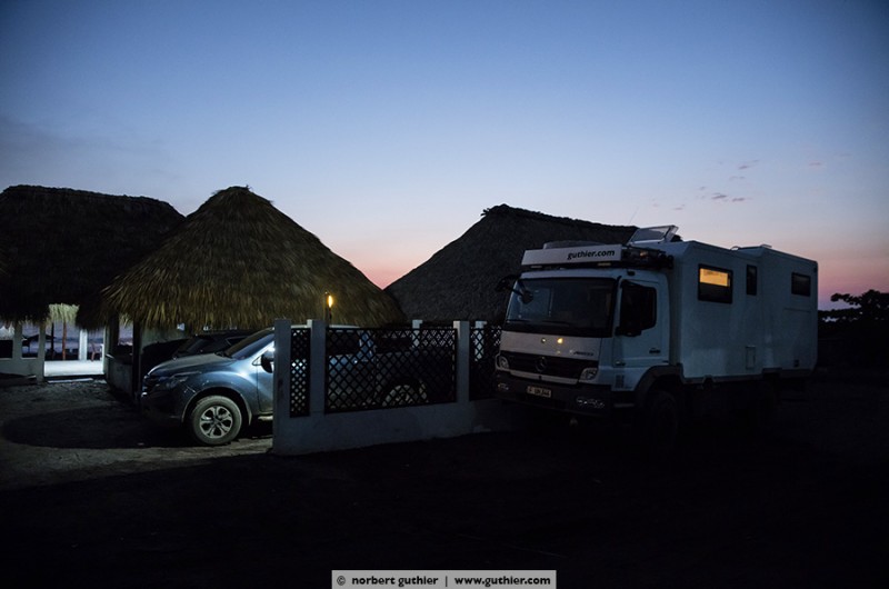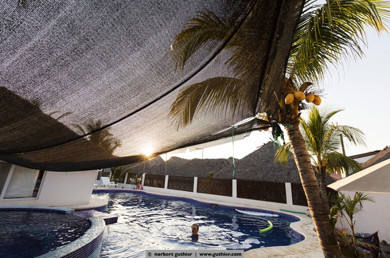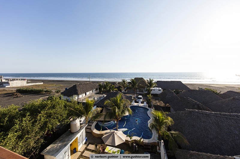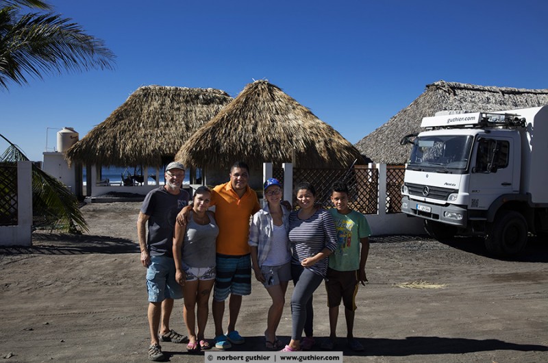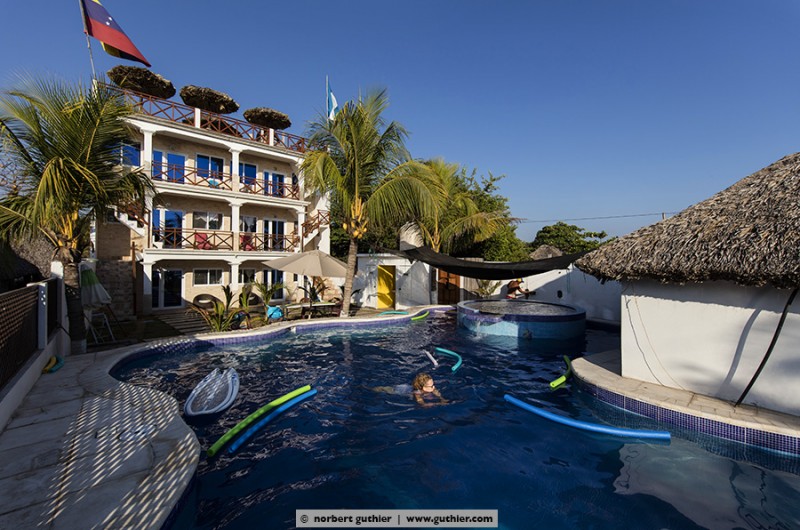 Seven months ago, Fredy and Katy opened their small family hotel, which they had build by their own: Hotel La Guitarra. The large pool with jacuzzi is Fredy’s pride. On weekends, families from Guatemala City having a break here from the big city jungle. Then the 6 rooms are occupied with up to 40 persons and more. From Sunday afternoons, the beach again belongs to the small fishing community, the pigs, the chickens and the dogs. Thank you for your hospitality, family connection and Katy’s Venezuelian food. We wish you all the best for your young business! By the way: Overlanders are welcome!!