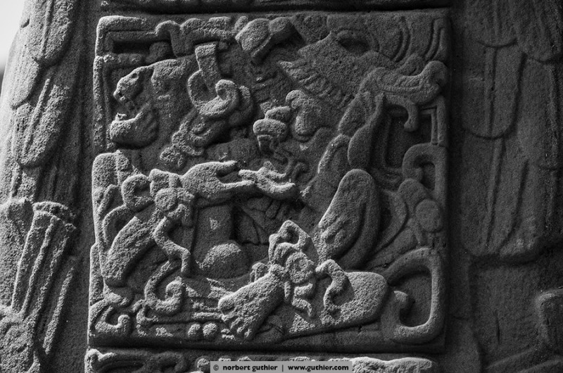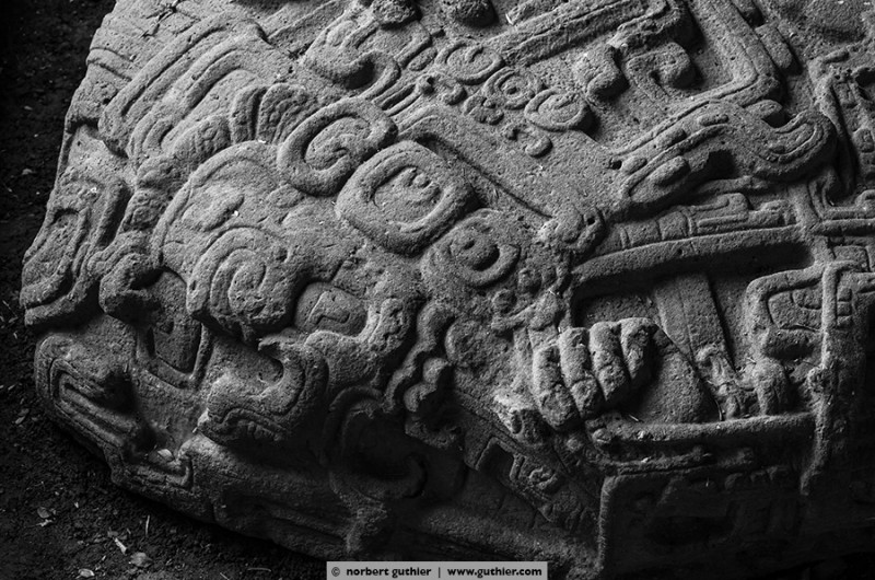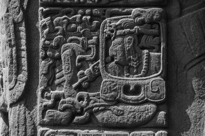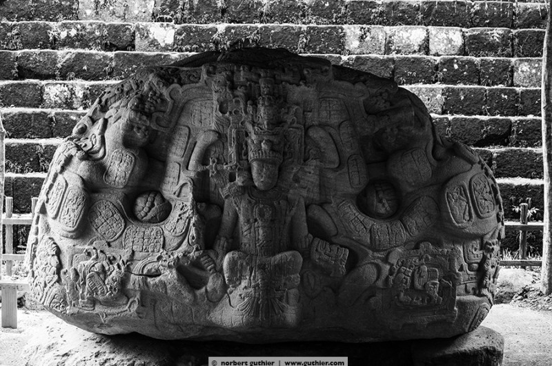 We arrived in the lowlands of guatemala, the petén. from now on it’s humid and warm. Quiriguá, meanwhile unseco world cultural heritage, was founded in 426 a.d. by „yax cow mo“, the god king of copán. Says our travel guide. Here you can see the most beautiful steels of Central America, large stone squares, covered with hyroglyphs and reliefs.