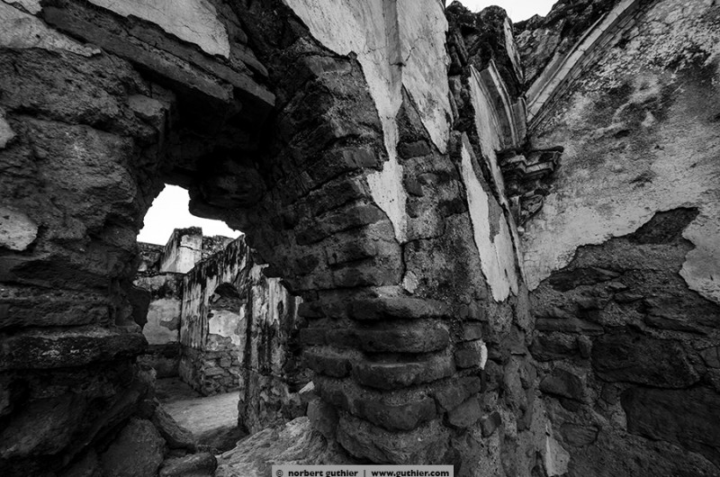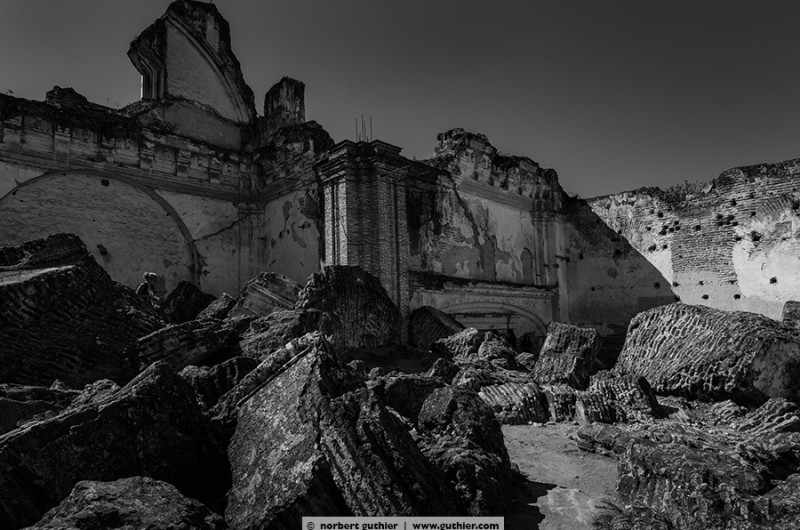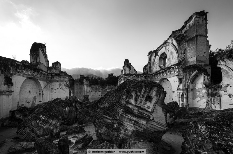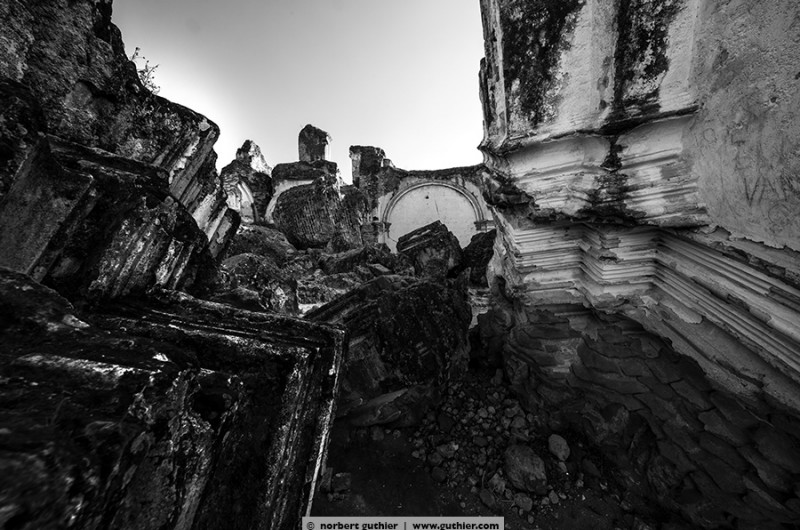 Anno 1701 the monks in antigua placed an order to built a magnificent church together with a monastry. In 1708 it was done and nothing was saved, thick walls were created with powerful arcs. just 65 years later, in 1773, the earth was wobbling and the complete monastery was fucked up. It was never rebuilt, still today huge clusters of depris are lying in the nave and with some imagination you could assume that quite some cowls lie beneath them.