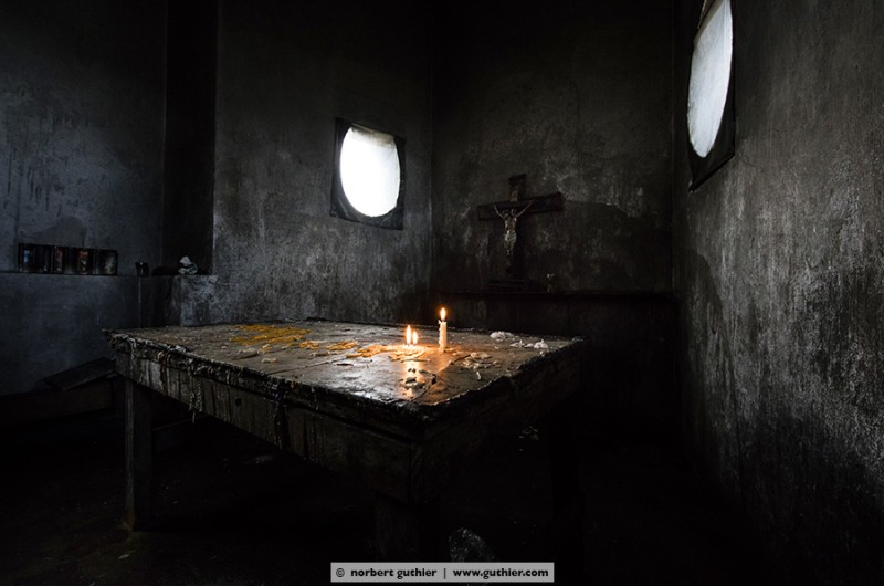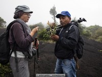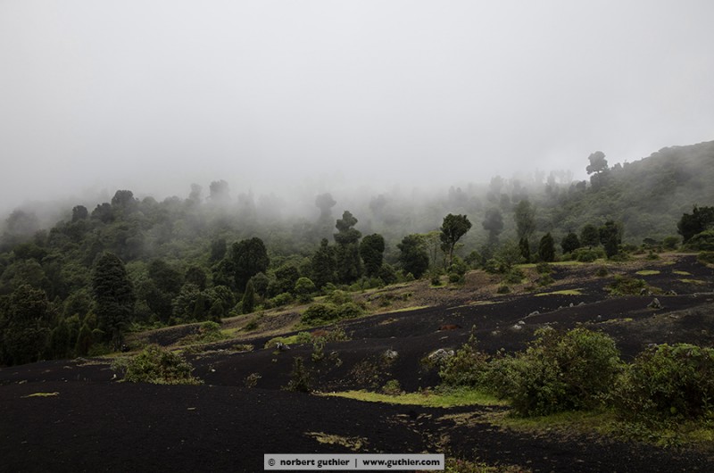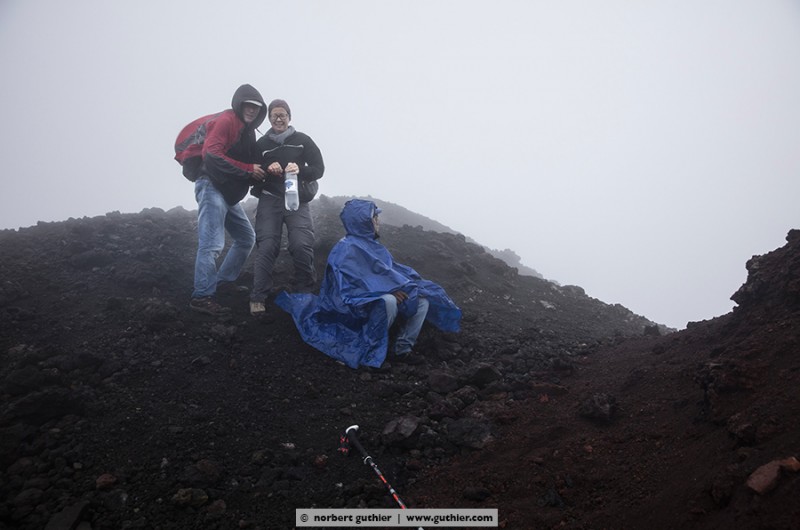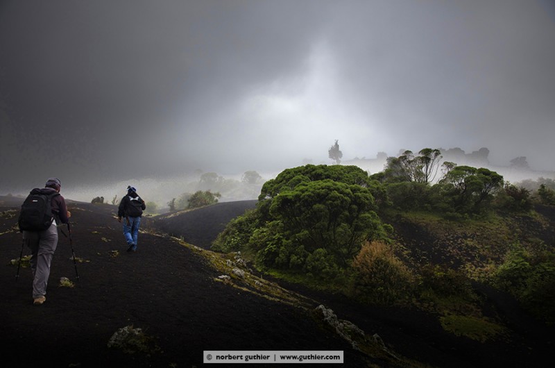 At 2pm we started with our guide, and walked the narrow path which was covered with horse droppings towards the vulcano pacaya. The weather worsened, the wind revived to a storm, the fog began to drizzle. Almost at the summit we met a tourist with her guide on their way down and they reported that they heard the pacaya hiss but couldn’t see anything. We also wanted to see that anything, so we stomped in the loose lava rocks upwardly. At the edge of the crater we were almost blown away by the storm and ran for cover behind some rocks. And then, for almost 5 seconds, there was a gap in the clouds. Then it was gone again, the pacaya.