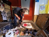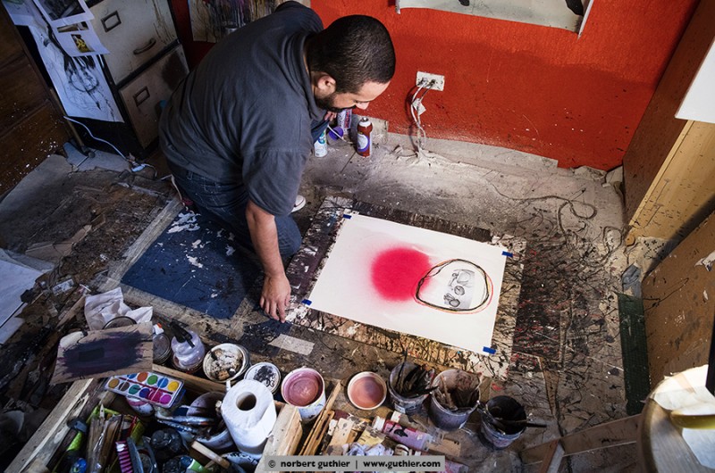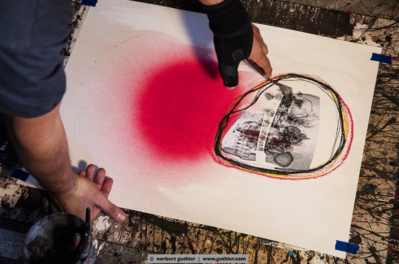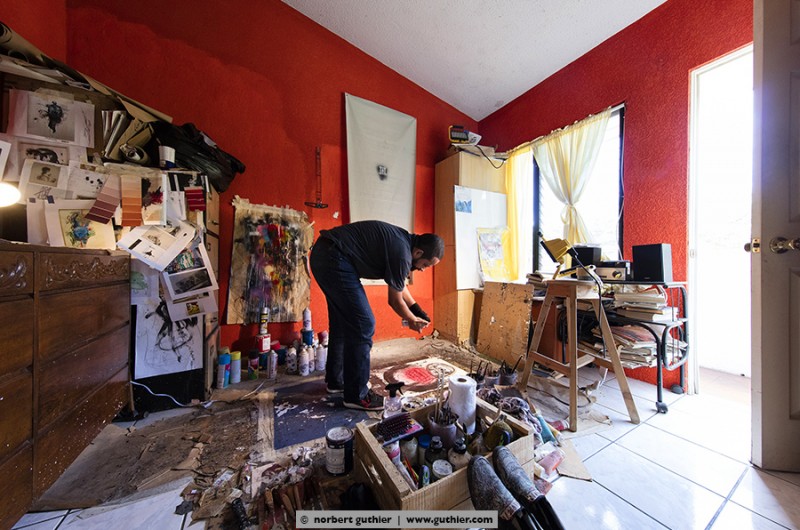 Last year the guatemalan artist alvaro sanchez had visited the californian artist heather wilcoxon in her studio in sausalito. At that time she was working on our co_works project. That was what alvoro had told me when I met him in the capital of guatemala. I had the opportunity to visit and photograph him in his studio, and we also agreed on a joint co_works project. He will work with a picture that I had captured in chichicastenango. Let us be curious what the result will be.