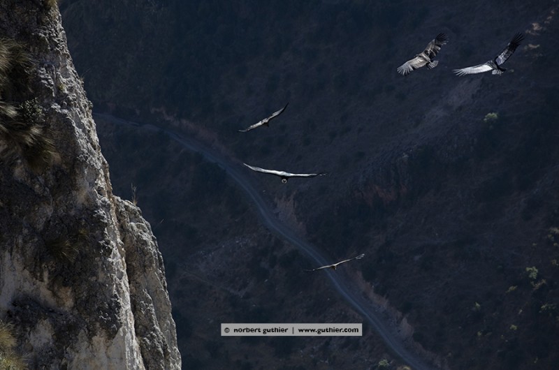 In the morning sun over 35 of these impressive birds go round in circles, before they disapeared in the andes and return again in the evening.