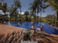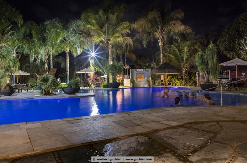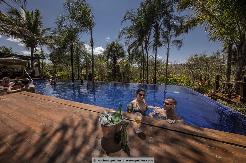 Actually, we were looking for a really good Japanese restaurant. The internet led us to Tsu Jiro Sushi in Pirenópolis. On site it turned out to be one of three restaurants in the Hotel Villa do Comendador. And we were not disappointed: The sashimi was delicious. Moreover, the hotel manager ALeandro Neres was so generous to offer our motorhome a parking place for the night. Thus, we could enjoy the beautiful garden and the thermal pool of the Villa do Comendador and had a quiet overnight place at the turbulent Dia da Independência do Brasil.