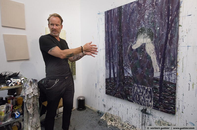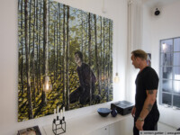 René Holm is one of Denmark’s most established contemporary artists and has been shown for years at fairs from Miami, Basel and New York, many solo exhibitions at galleries in Denmark, Germany and France. Again and again Holm takes up existential Themes and locates Them in nature. Frequent Humans appears as themselves in Rene’ Holm’s paintings, sometimes however only by Human traces. The backdtop is often a slightly threatening Dark forest.