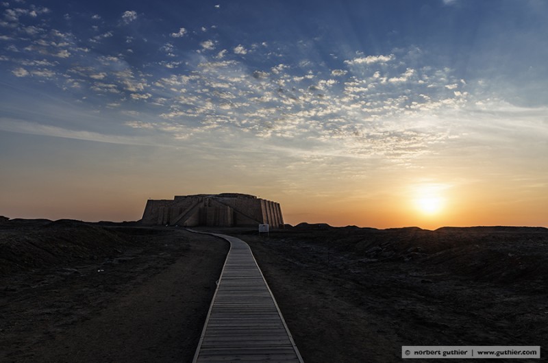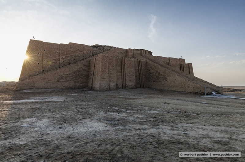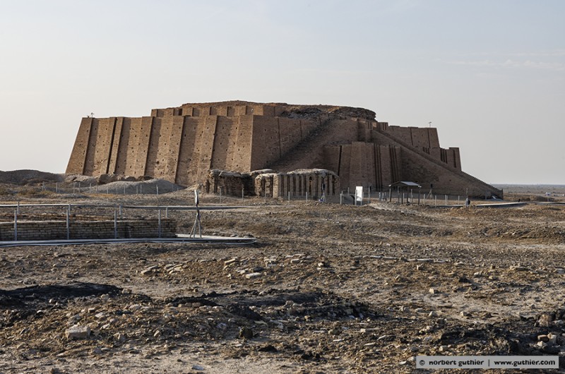 The ancient site ur is secured with solid mesh and barbed wire, and a guide said this is because it is now a unesco world heritage site. The reconstructed ziggurat has origins that probably date back to the 5th century BC.  The current form was dedicated to the moon-god “nanna” and was probably built over 4000 years ago by king ur-nammu and his son, or rather the two rulers commissioned its construction. The stepped temple has a base length of 62.5m x 43m and was probably 25 metres high.